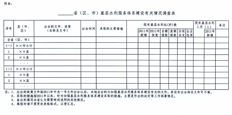 省(区、市)基层水利服务体系建设有关情况调查表